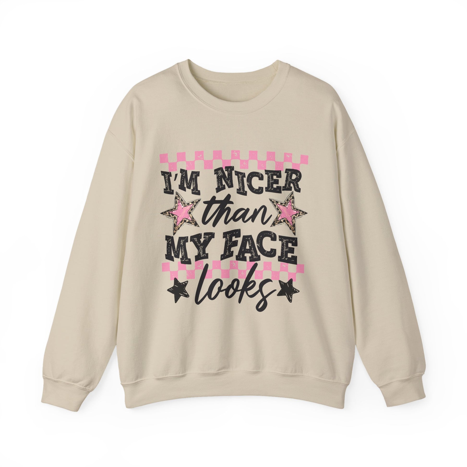 "I'm Nicer Than My Face Looks" Pink Checker Retro Graphic