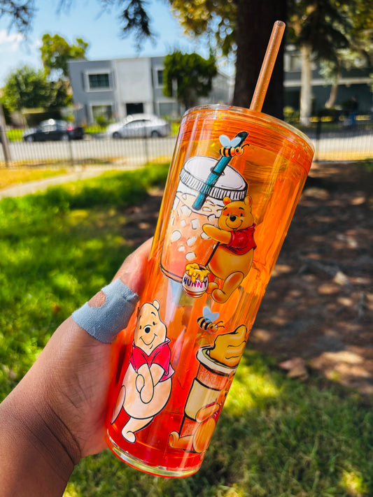 Orange Drip Pooh 24 oz acrylic Snow globe tumbler